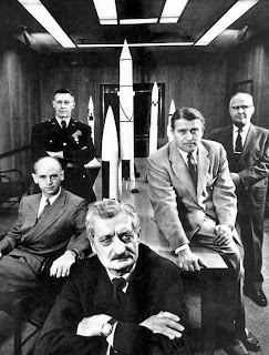 Fotografía de 1956 en la que aparecen los directores del programa de desarrollo de misiles para el ejército estadounidense (conocido como ABMA, Army Ballistic Missile Agency):
